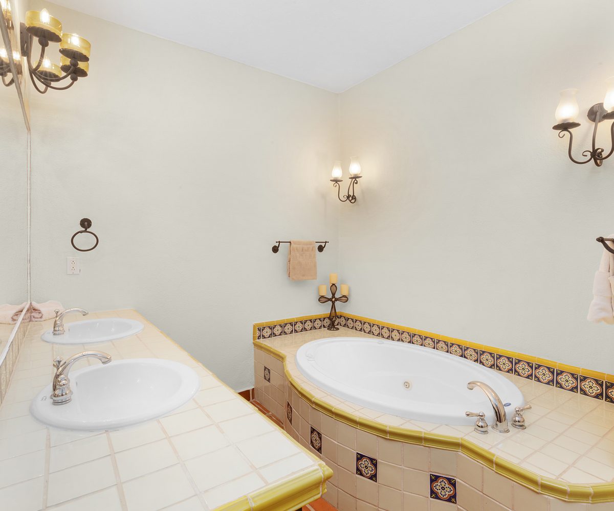Additionally on the second level is a lovely primary en -suite which opens to a second sitting area on the terrace. The en suite has double vanities and a soaking tub.
