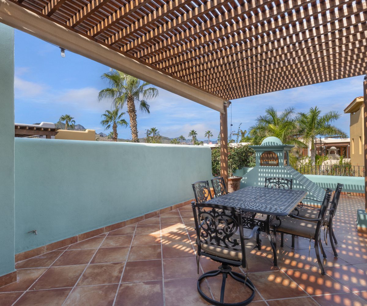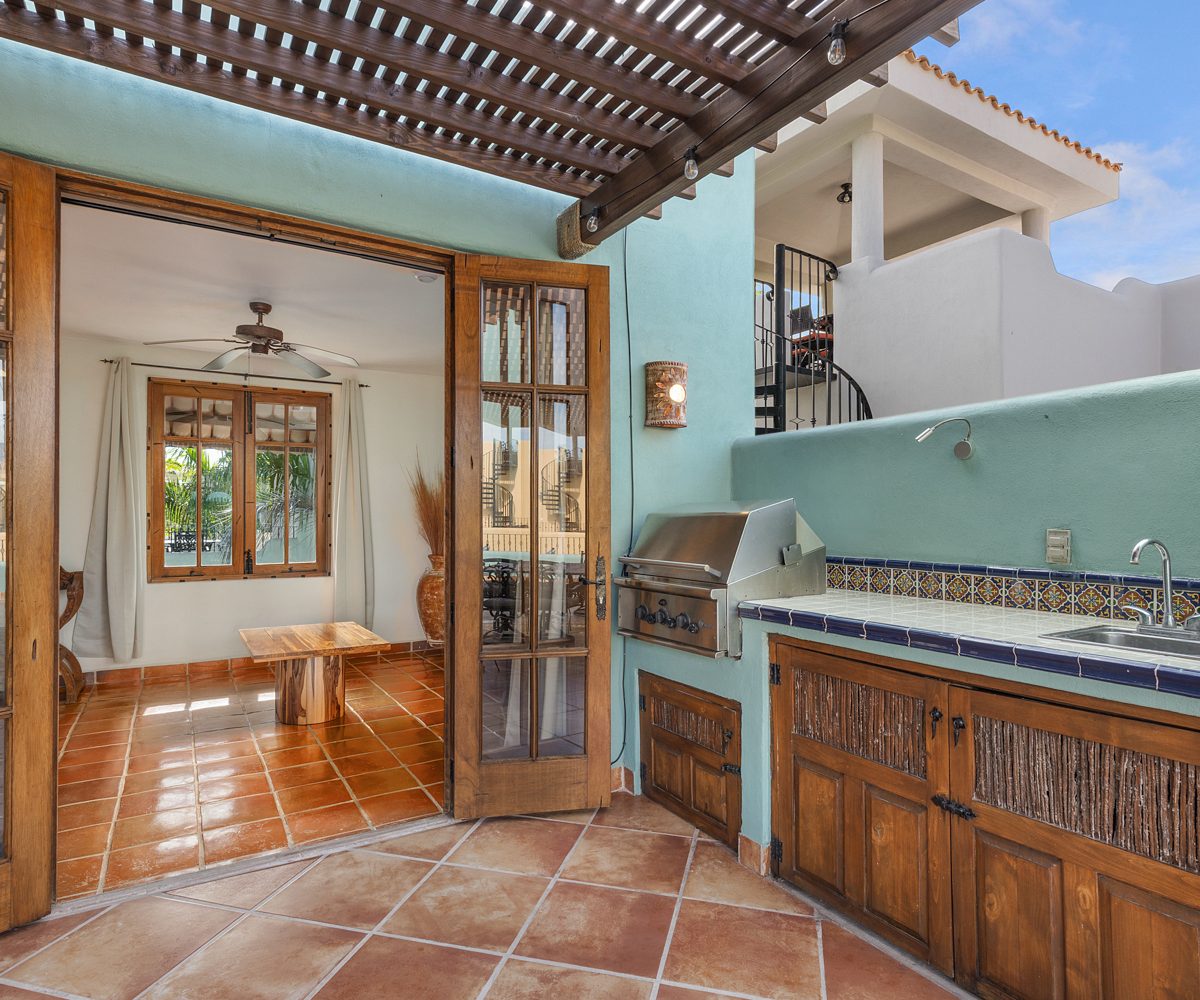 An elegant Cantera and wrought iron staircase leads from the foyer to the second level terrace where you are greeted by sweeping Sea of Cortez and Island views. A built-in lounge area with a bbq cook center and wooden shade pergola and powder room make this the perfect place to relax and entertain.