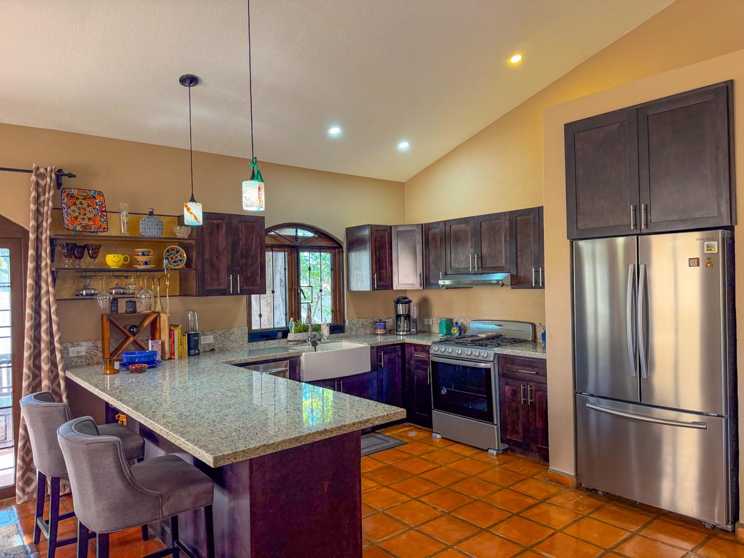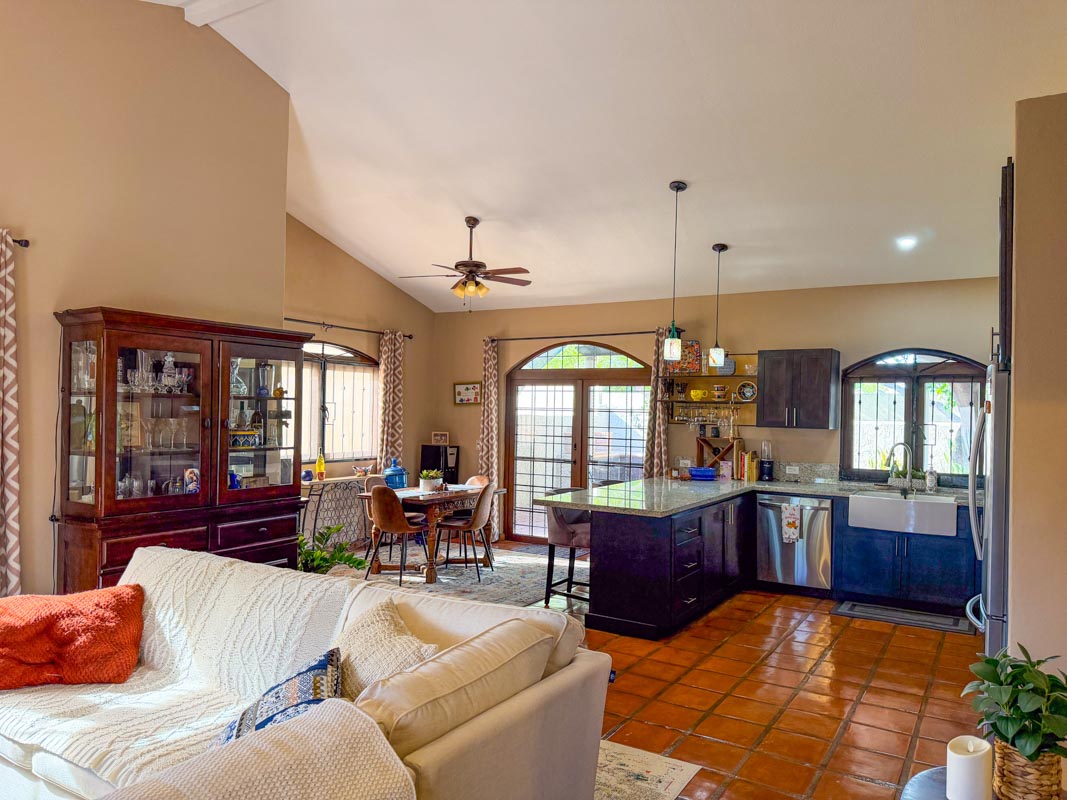 The property includes a detached studio with a kitchenette—perfect for guests or rental income—and an enclosed secure storage building and covered carport located across from the house. The entire property is fully walled and gated for privacy and security. Additionally, a 4,593 sq ft walled rear lot is ready to develop with potential sea and mountain views from a second floor.