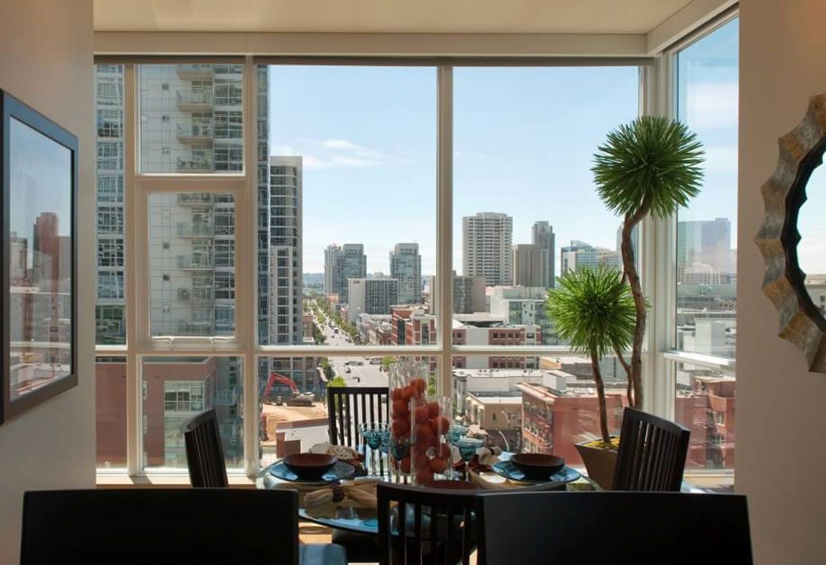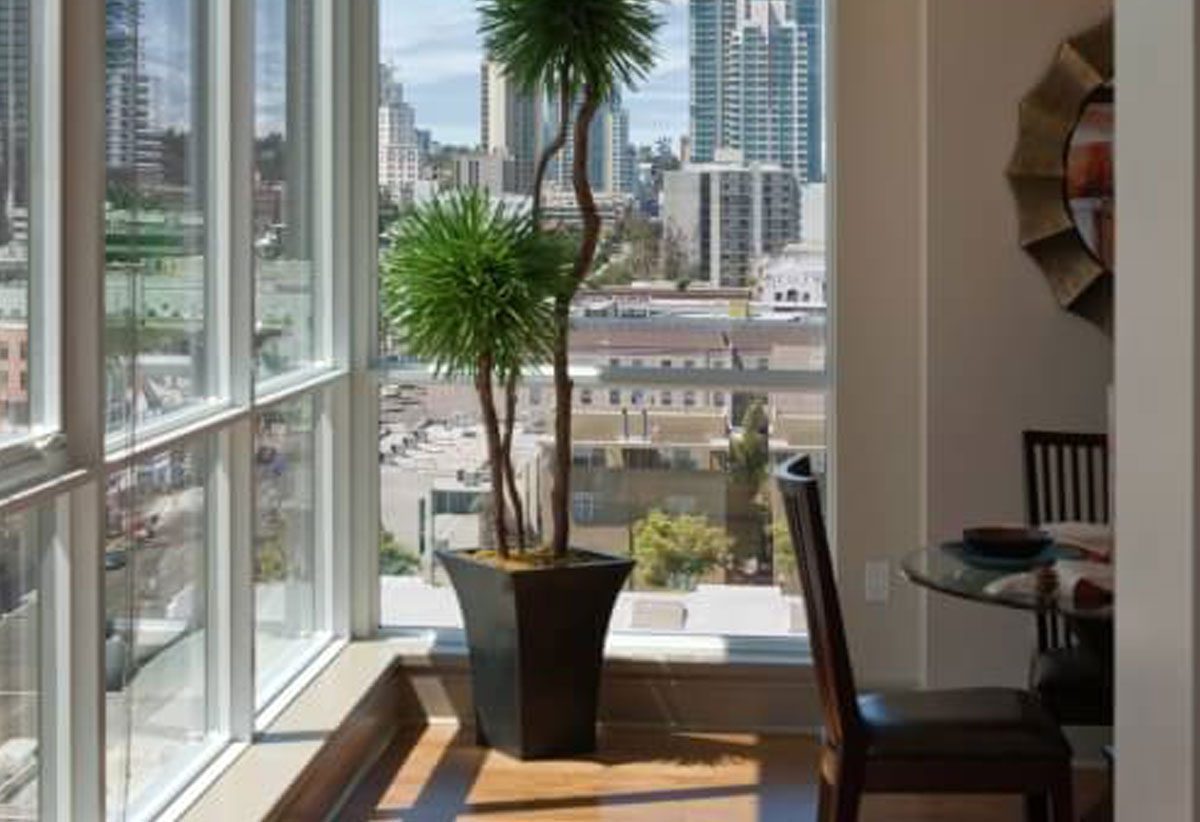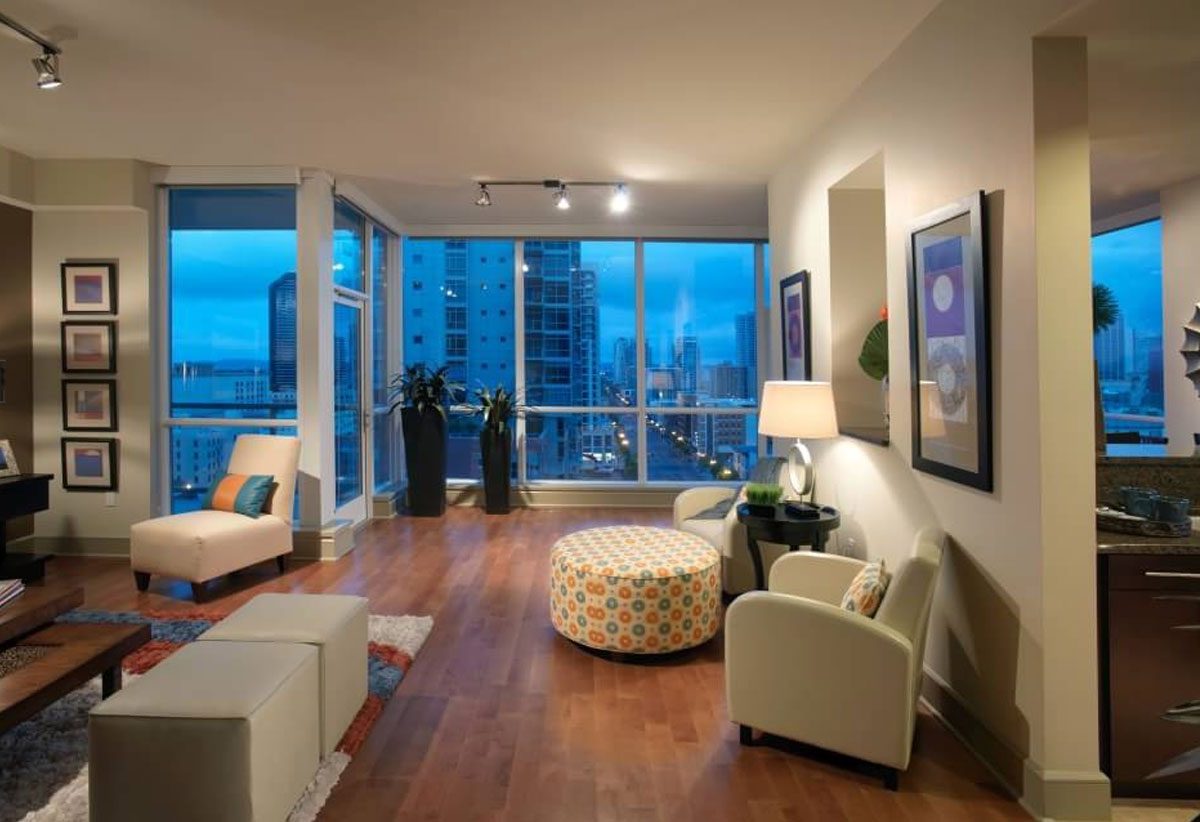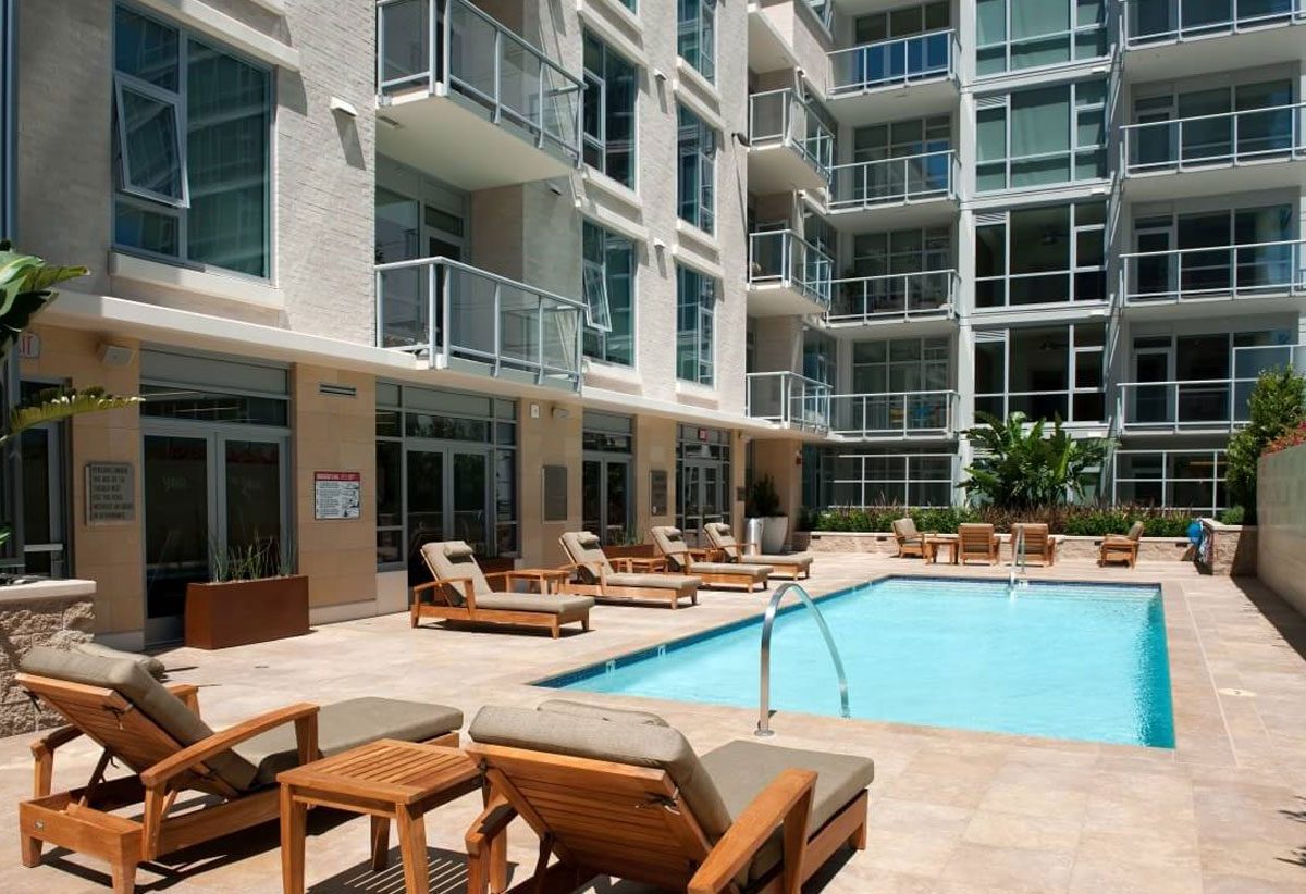 Modern eight story structure offers a contemporary mixed-use building with 207 one, two and three bedroom apartments. With 9,000 square feet of street level retail. Hip urban retreats that function for downtown lifestyles are greeted by a secluded interior courtyard, perfectly landscaped with bamboo, palm trees and a warming fire pit surrounded by seating, which presents the perfect urban oasis. From the gated parking, to the lobby, to your front door, a unique sense of location and style brings you home.