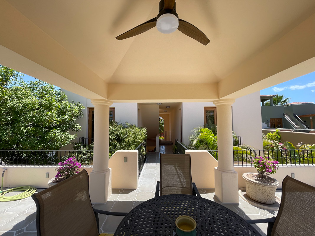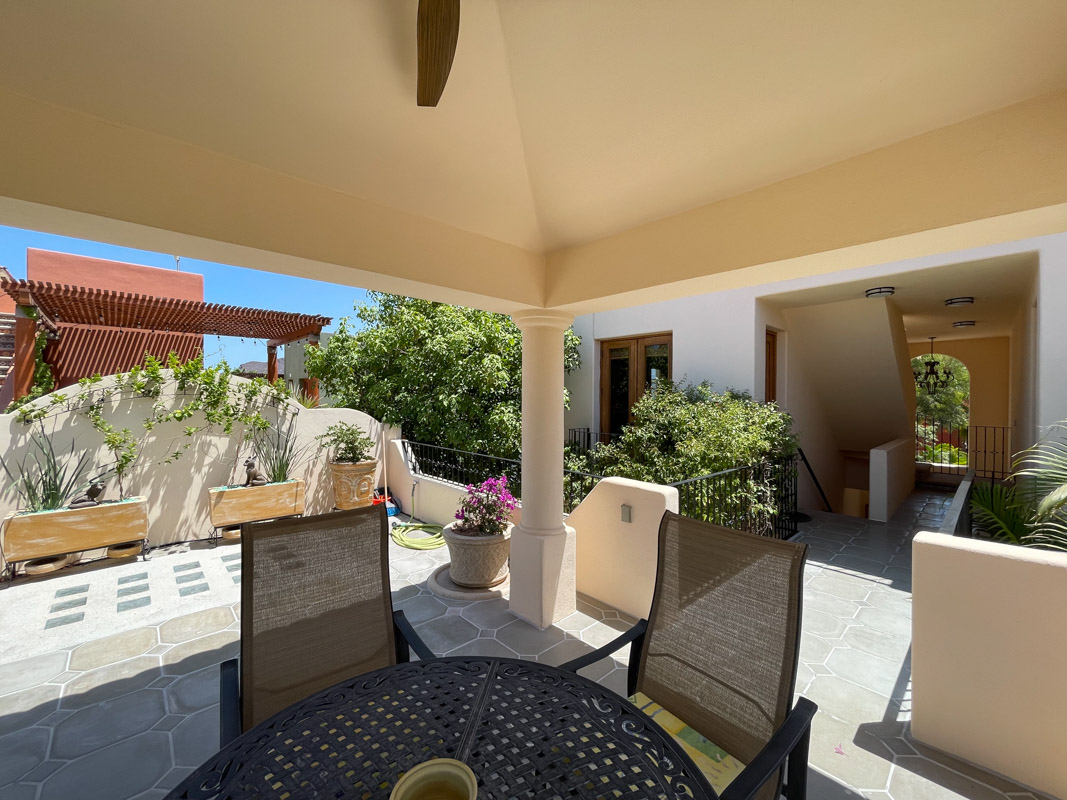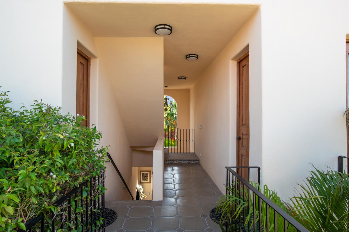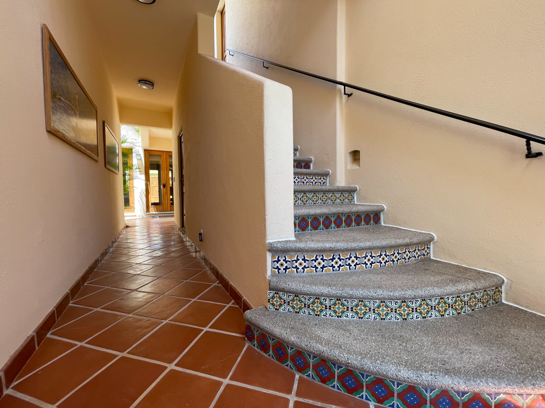Wander up the colorful Mexican tile staircase to the second floor and across a floating bridge to encounter a large covered terrace, perfect for relaxing and enjoying the outdoors.