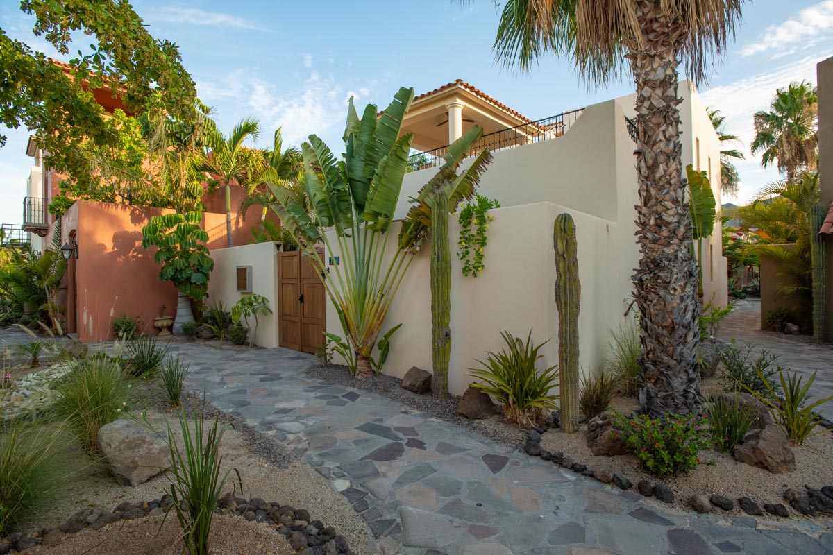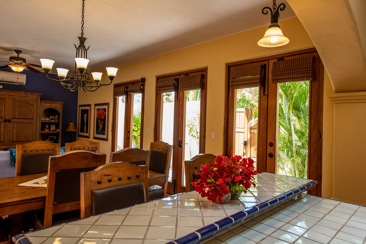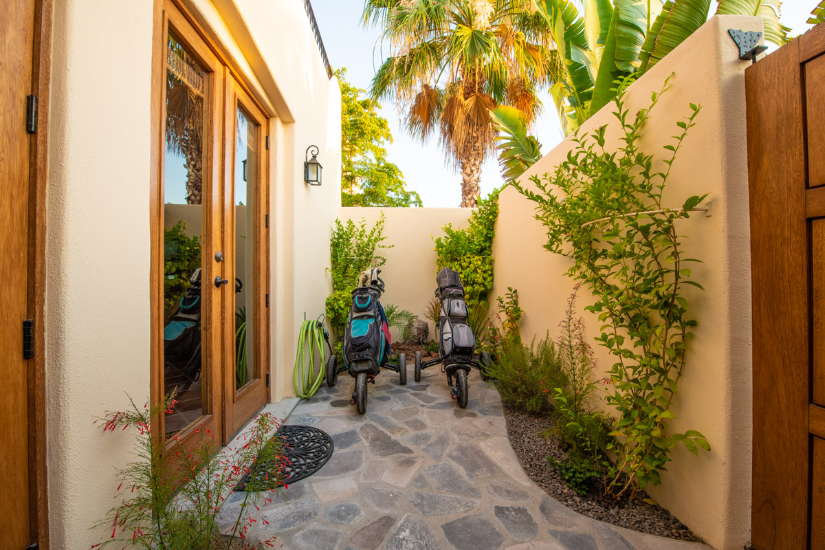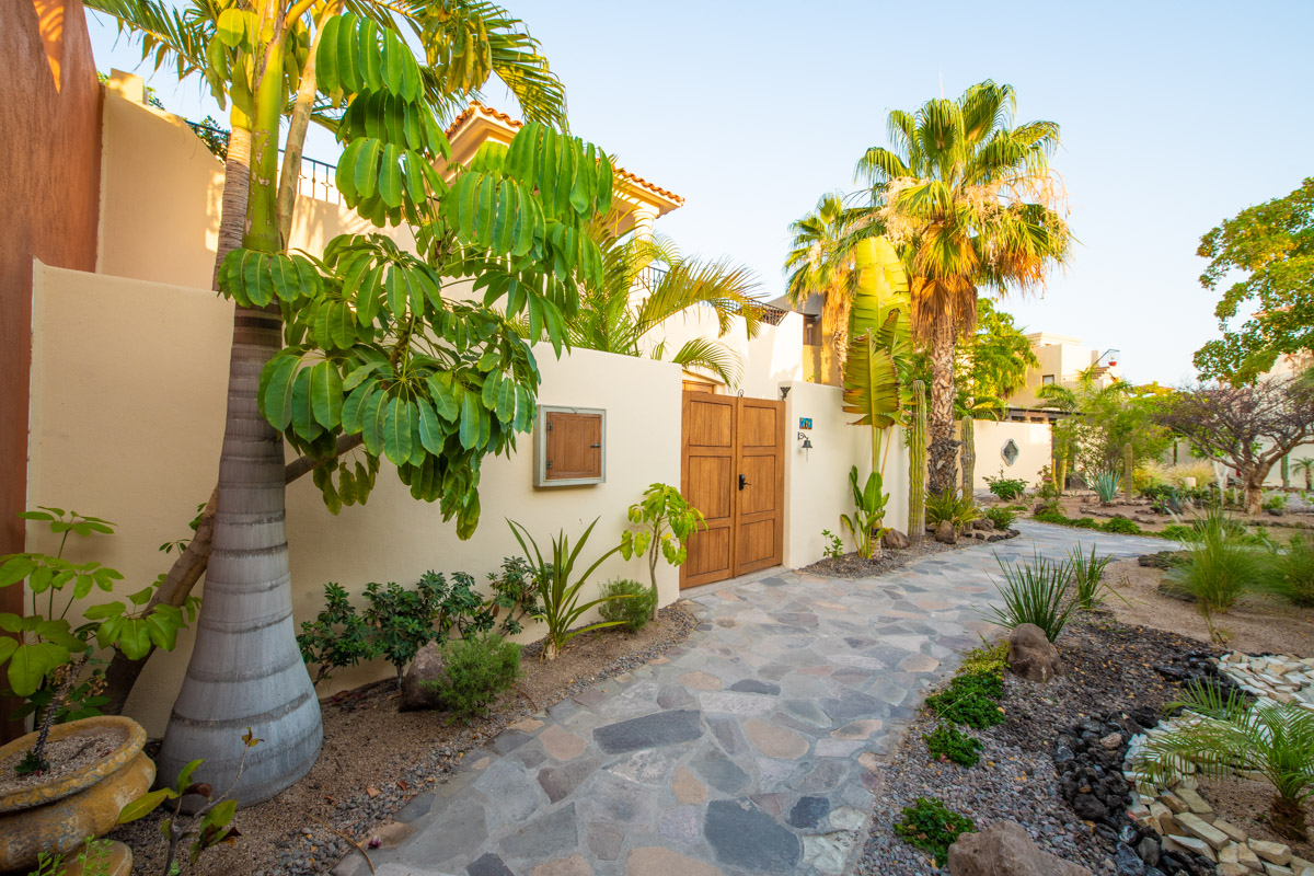 Gorgeous four bedroom/ four bathroom Casa de las Olas is ideally located on the community zocolo (large garden with a waterfall feature) and very close to one of the beautiful community pools and gourmet restaurants. Surrounded by gardens, Casa de las Olas is essentially open on all sides and creates the feeling that you are living in the middle of your own private garden oasis! A beautiful custom beveled glass front door invites the garden and natural light to enter but also provides privacy. On both sides of the great room (kitchen, living and dining room) there are two sets of glass doors that open up onto interior tropical gardens, full of flowering plants and space to entertain. The fully equipped kitchen has stainless steel appliances, a gas range and a tiled island with a bar, perfect for entertaining friends. There is a back garden and patio with room to store golf clubs and golf cart or kayaks.