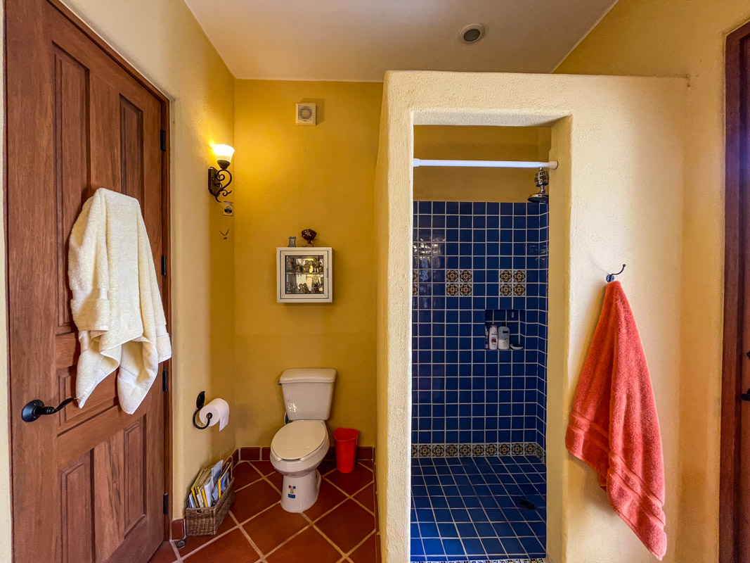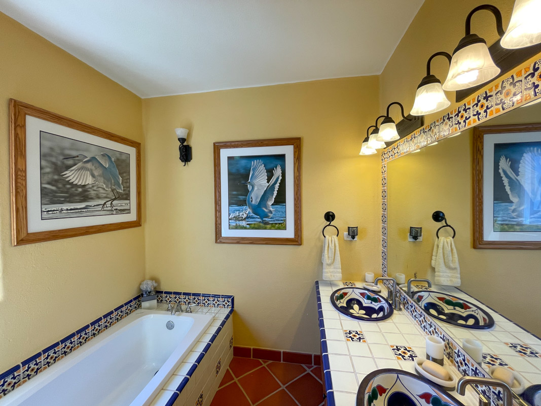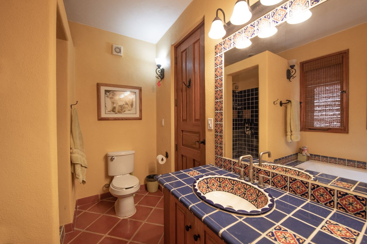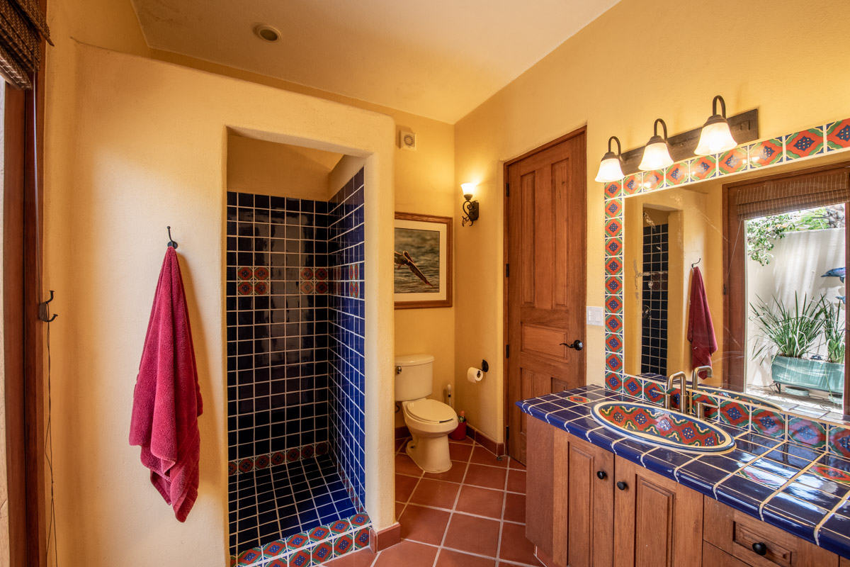On the second floor you will find another bedroom with a Juliet balcony and en suite bath with a talavera tiled shower and a tub. A additional fourth room with an ensuite bath with talavera tiled shower and tub makes a wonderful office/den/guest suite.