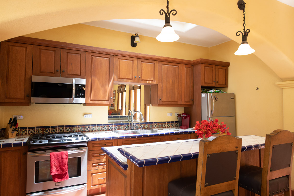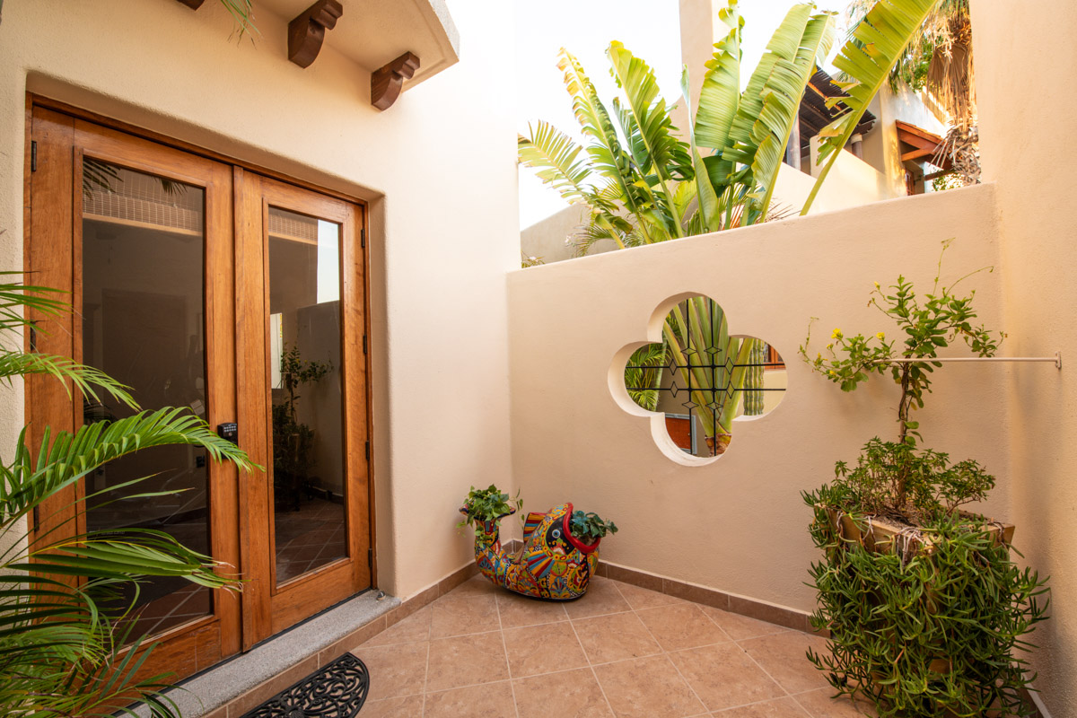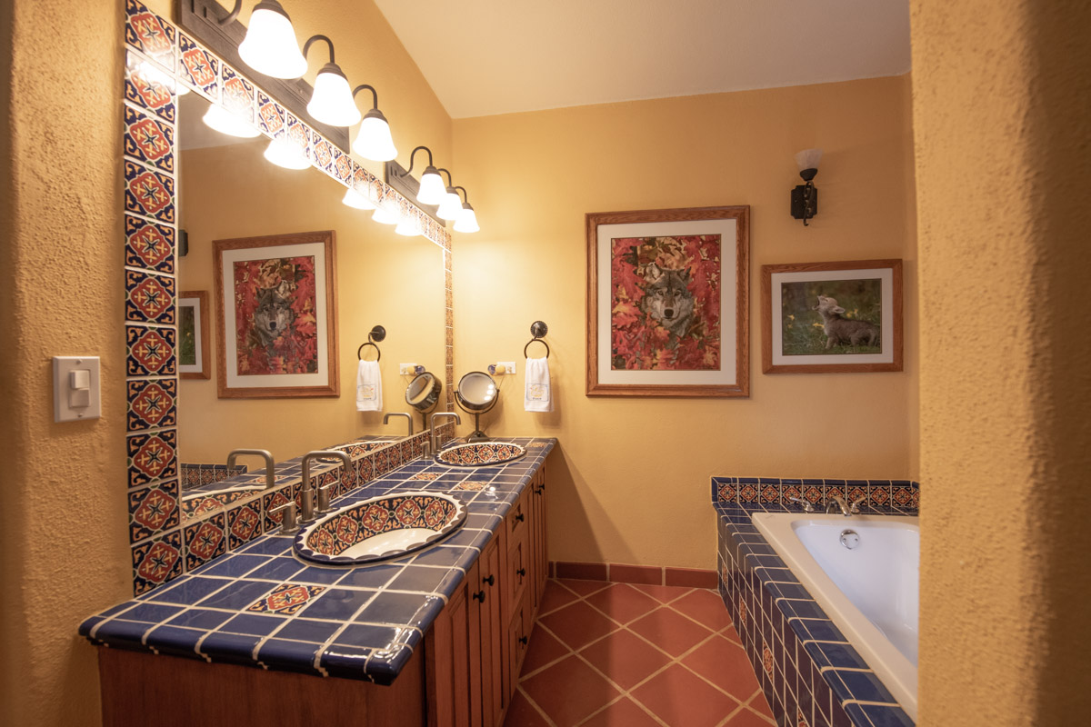 On the second floor you will find another bedroom with a Juliet balcony and en suite bath with a talavera tiled shower and a tub. A additional fourth room with an ensuite bath with talavera tiled shower and tub makes a wonderful office/den/guest suite.